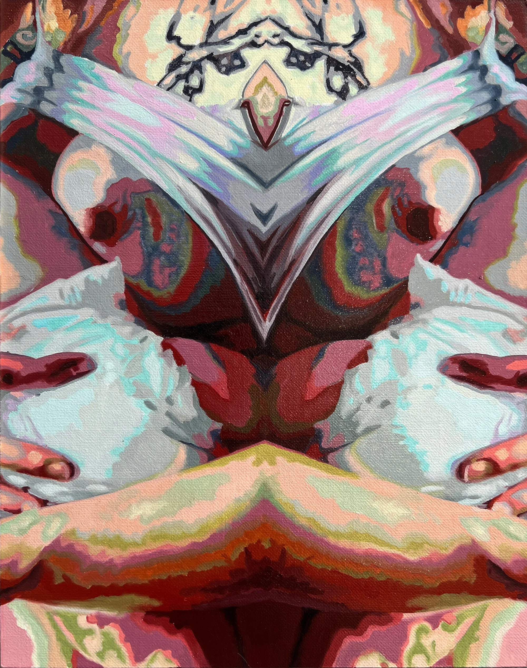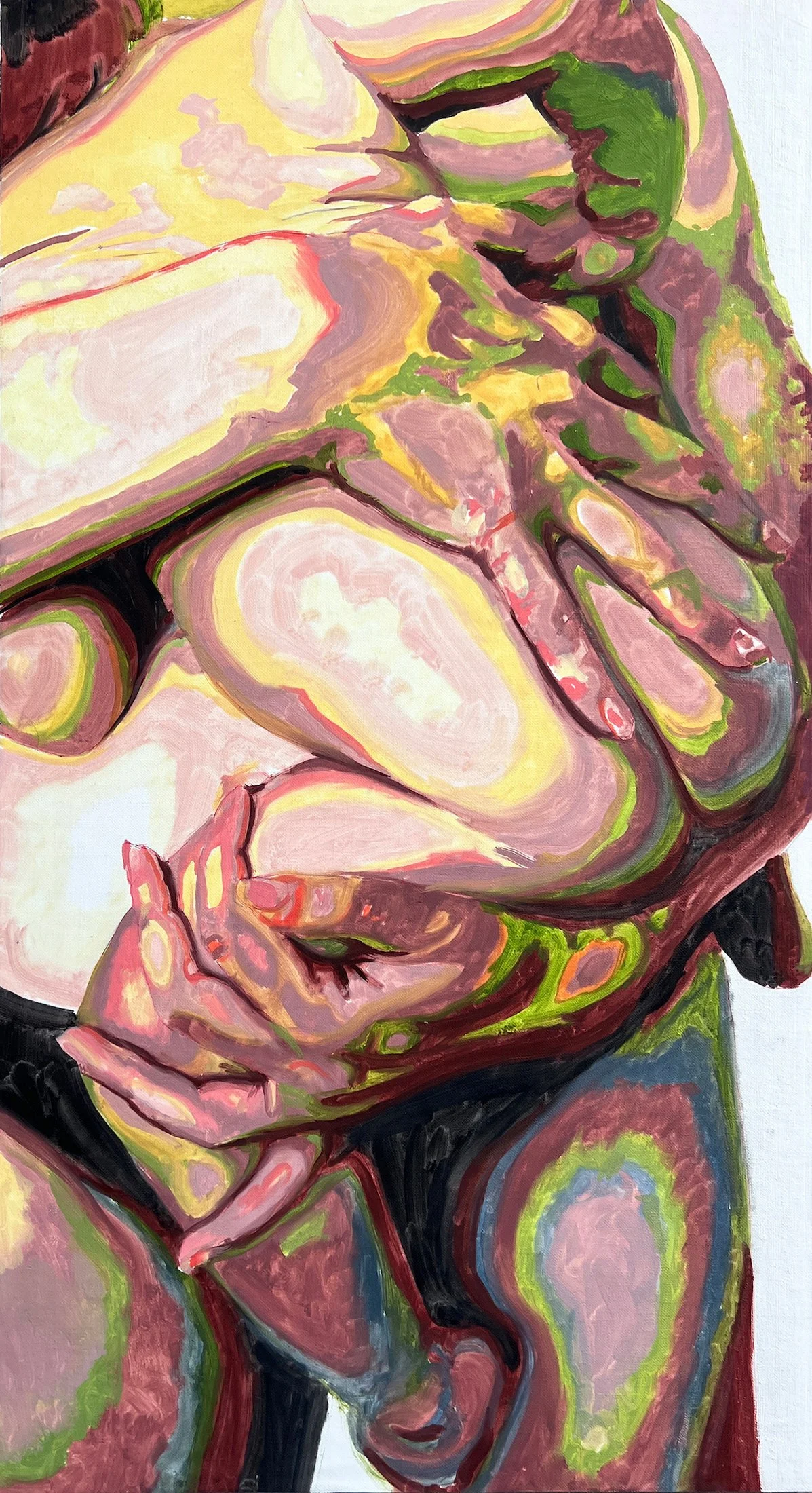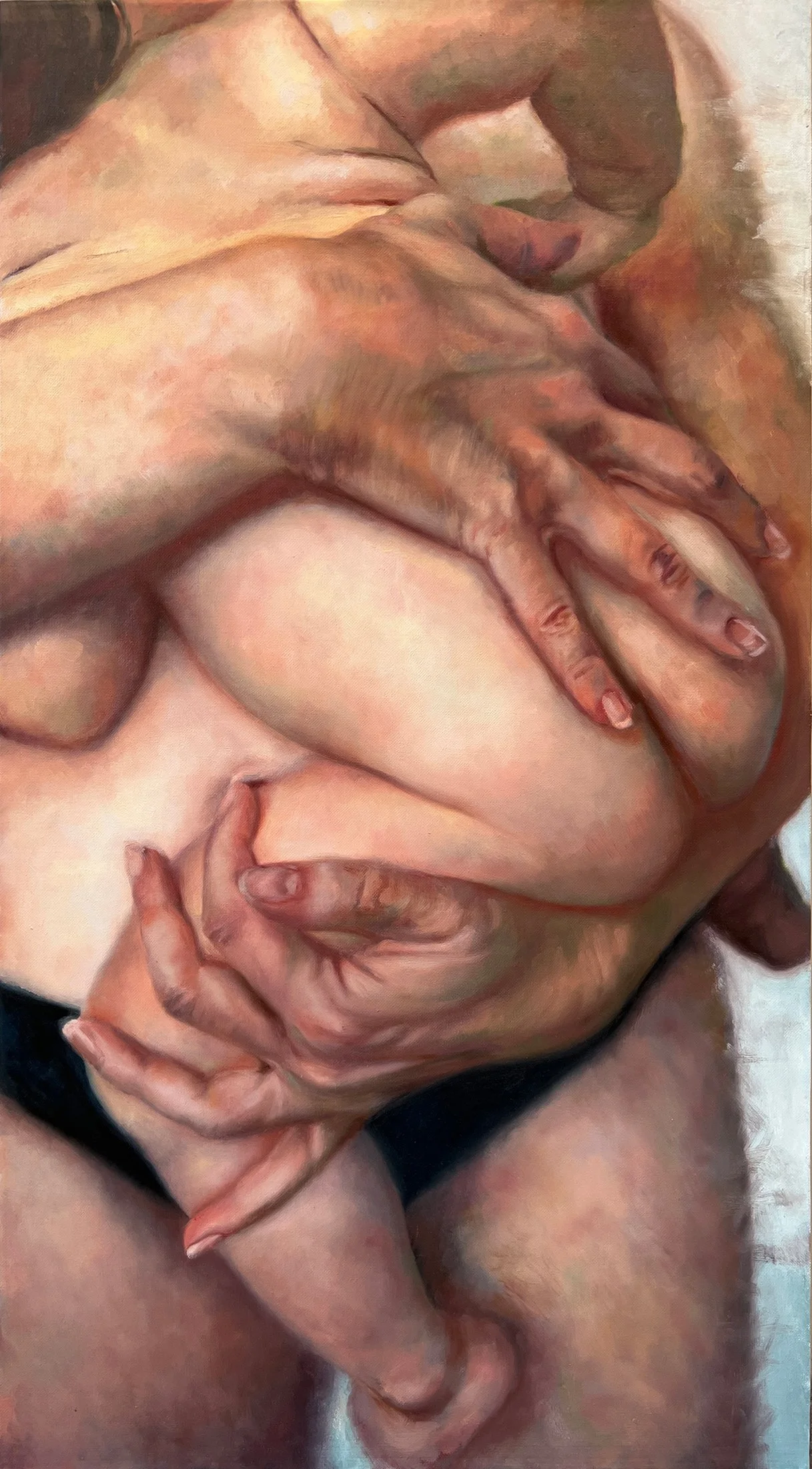 Arms Full is one part memento mori – for the present self, for the past self, and for the fleeting moments of a child’s growth – and one part meditation on the weight of motherhood. The visual dialogue created by these two painters floats many questions to the surface: Where does the “self” begin and end when a child arrives? What is found and what is lost? Some of the painting titles guide us in pointed directions while others are quite coded.