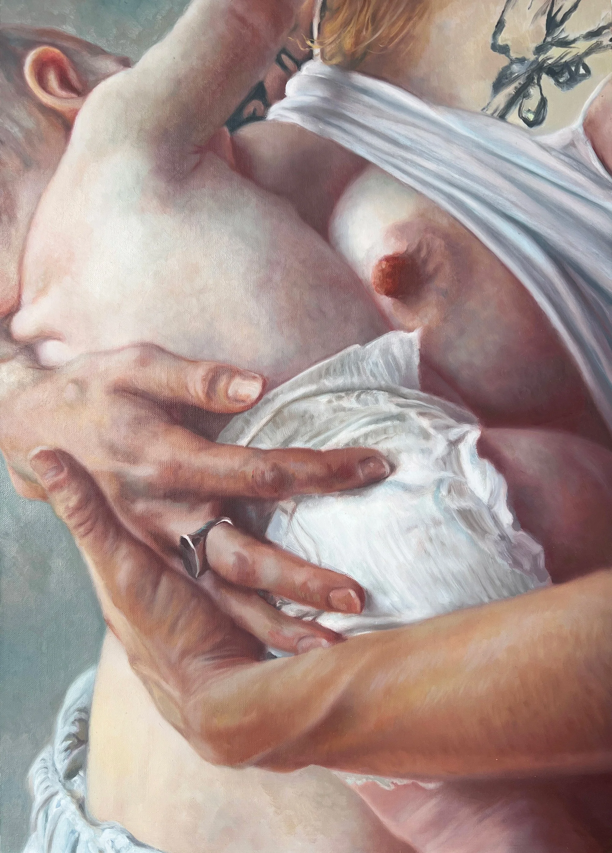 To have one’s arms full can simultaneously denote both abundance and burden. Placing these two artist mothers' pieces in conversation with each other amplifies the multifaceted nature of caregiving, connection, mourning, and the ephemerality of it all.